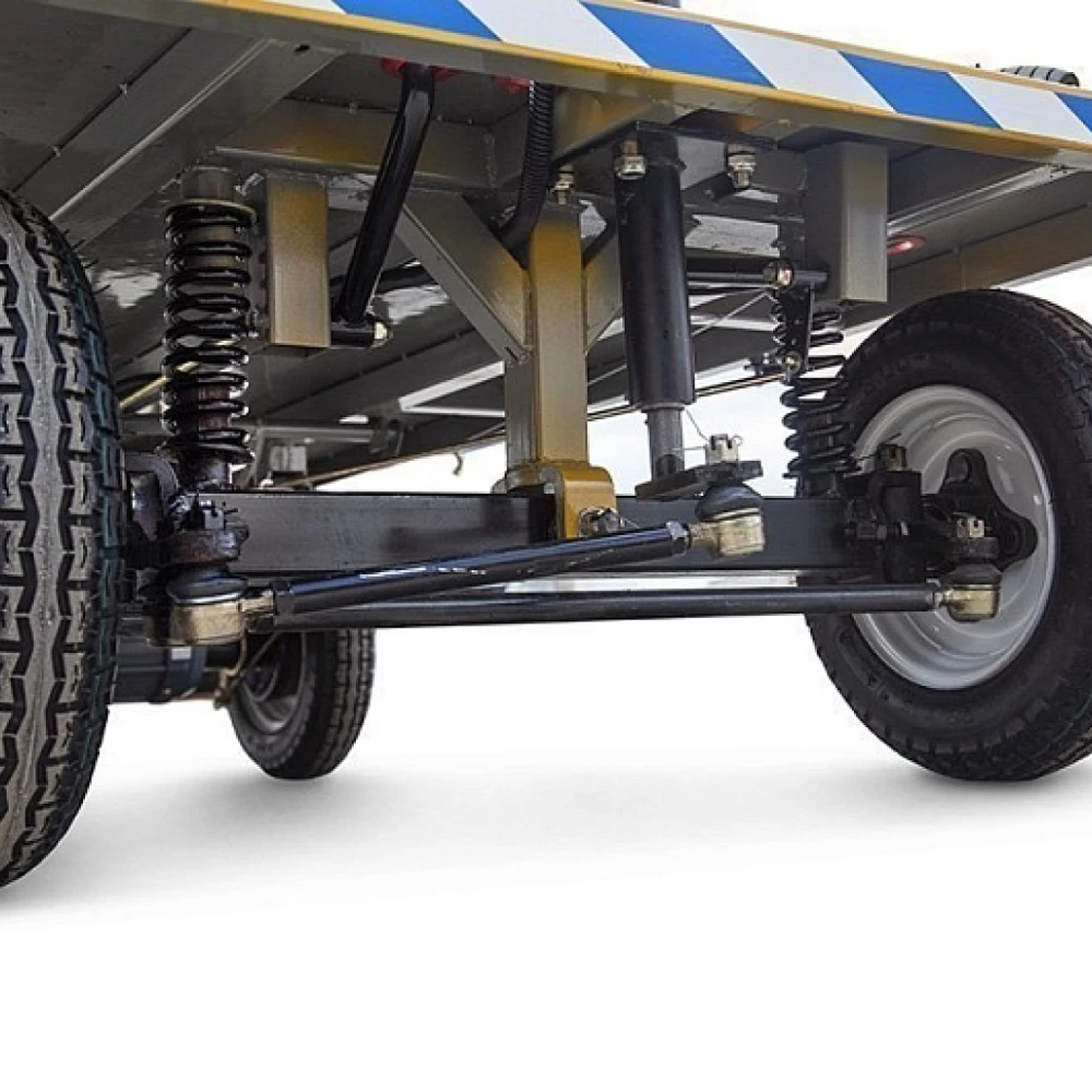 Техника массой 110 кг рассчитана на грузоподъемность до 800 кг, обрамлена надежной рамой, обеспечивающей удобство транспортировки и целостность доставляемого груза. Максимальная скорость движения составляет 25 км/час, пробег на одной подзарядке – до 30 км.