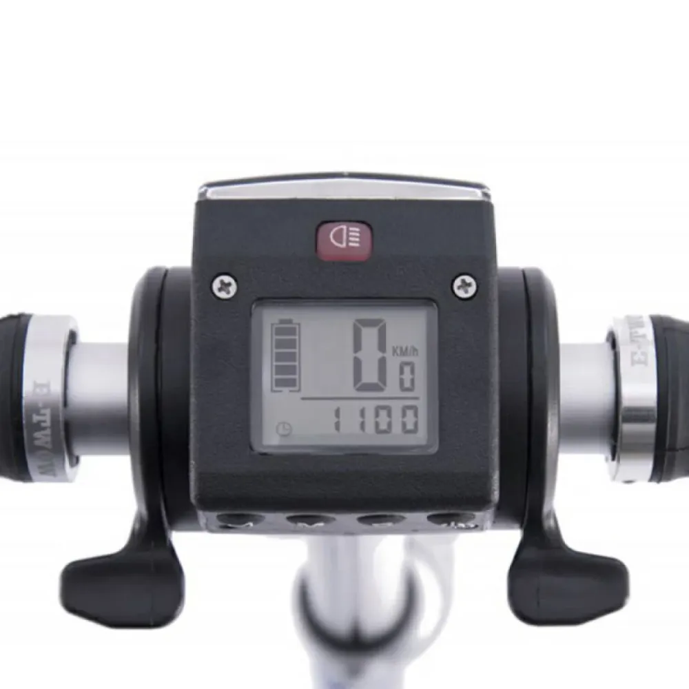 Широкая нескользящая дека, регулируемое анатомическое седло исключают ощущение усталости при езде на дальние расстояния. Прорезиненные грипсы и электрофрикционная тормозная система гарантируют уверенность в собственных действиях, исключает непредвиденные ситуации в дороге. Благодаря информационному дисплею ездок контролирует пробег, скоростные параметры и степень заряда батареи. Складная конструкция электросамоката удобная при транспортировке и хранении техники.
