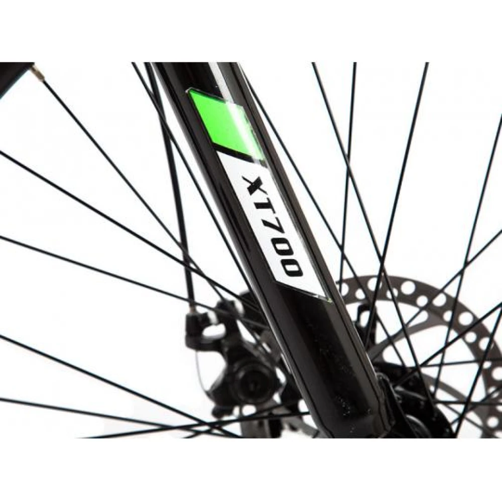 Электрический велосипед Eltreco XT-700 оборудован двигателем мощностью 350 Вт, он дает равномерное ускорение, позволяет развивать максимальную скорость 35 км/ч. Есть возможность подбирать комфортный скоростной режим у велосипеда 7 скоростей. Дисковая тормозная система дает уверенность в совершаемых маневрах. При передвижении по бездорожью амортизация передней подвески сглаживает вибрацию. Колеса диаметром 28 дюймов с протекторными покрышками улучшают проходимость байка.