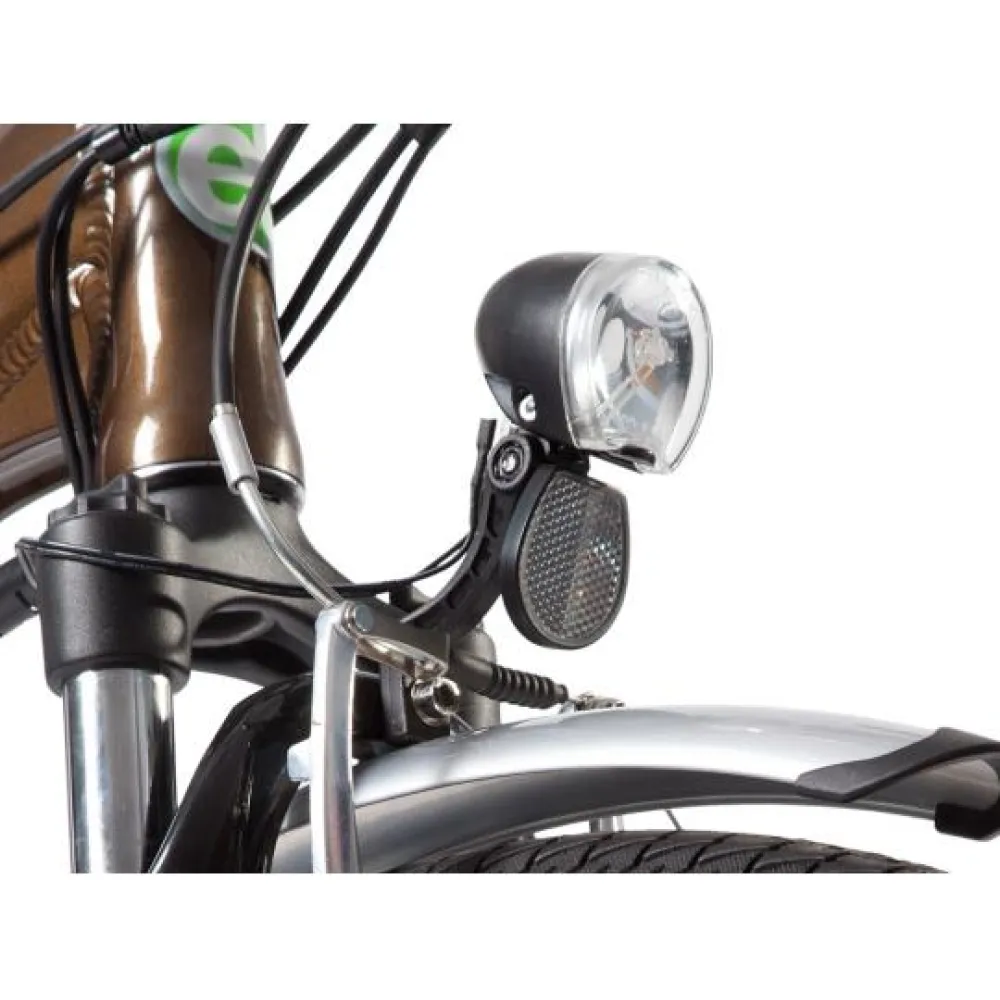 Электровелосипед Eltreco Grand 700 C оснащен литий-ионным аккумулятором, емкостью 10 А*ч, он легко снимается, пополнить заряд батареи можно за 6 часов, подключив ее к сети через зарядное устройство. Полного заряда батареи хватает на 70 км пути. Агрегат оборудован мотор-колесом мощностью 250 Вт, редукторный двигатель придает ровное ускорение и имеет экономное энергопотребление. Максимальная скорость, развиваемая транспортным средством, составляет 30 км/ч.