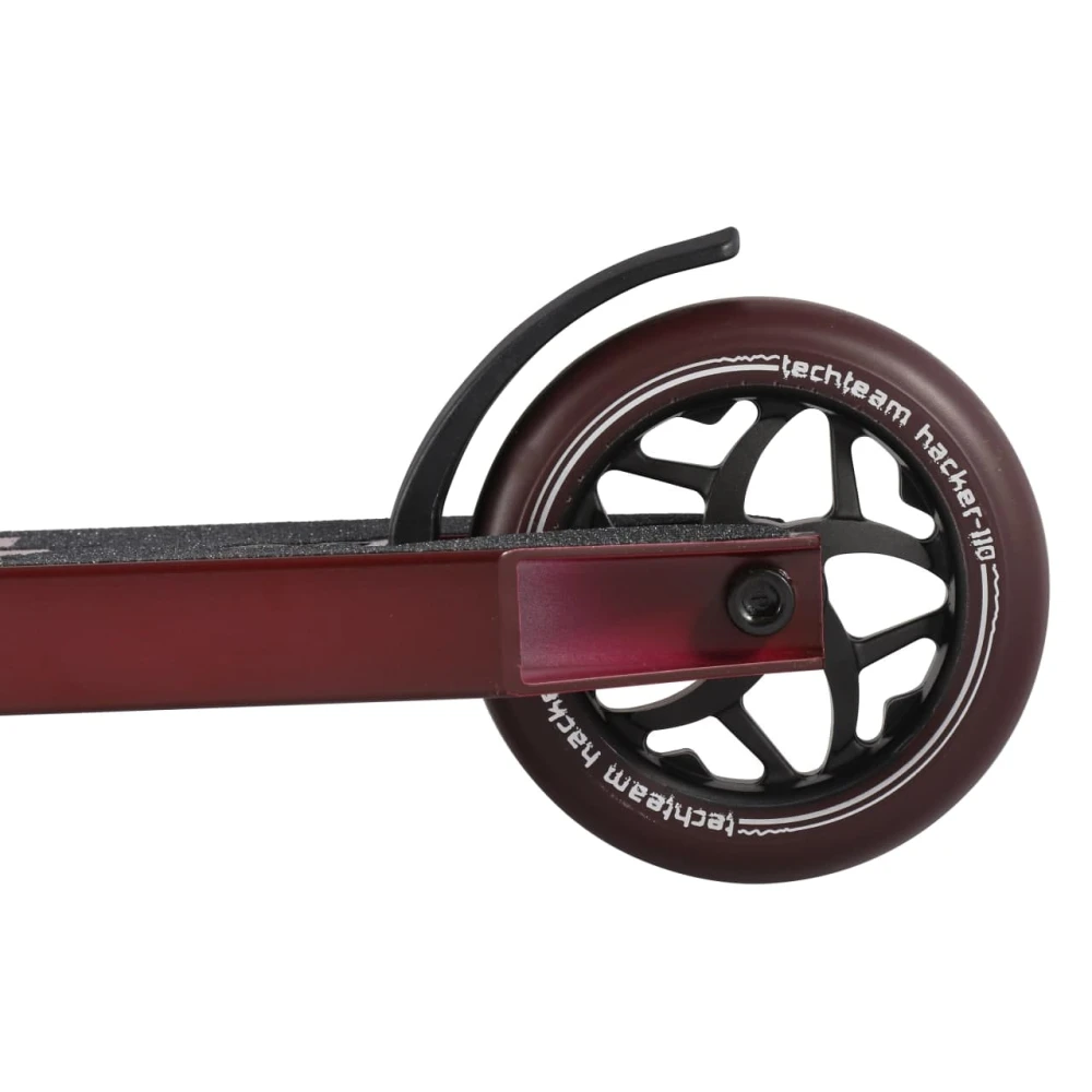Трюковой самокат Techteam hacker 2021-го модельного года, прекрасно подходит любителям езды с ростом от 162 см вплоть до 180 см. Этот самокат обладает внушительным оснащением за свою стоимость techteam hacker может предложить деку из алюминия – шириной в 120 мм и длиной 520 мм с полезной площадью 370 мм. Имеет заваренную переднюю часть под скосом. И по тенденции моды для снижения веса была оснащена нейлоновым тормозом. Благодаря этому удалось снизить вес до 3900 грамм при этом сохранив свою прочность и надежность тормоза.